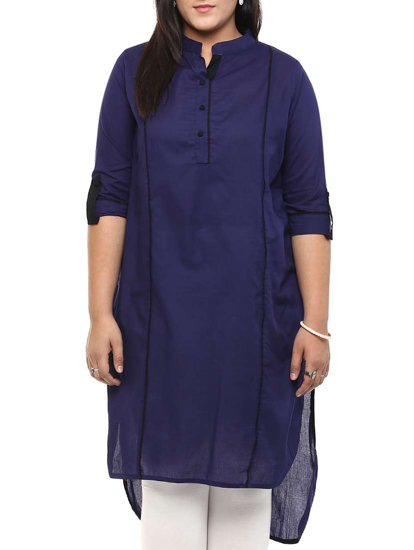 blue cotton high-low kurta - 10733986 - Very Small Image - 1
