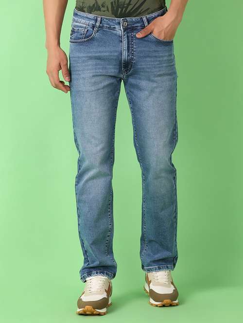 men mid rise plain jeans