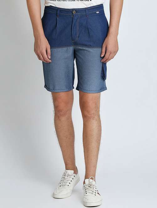 blue color block shorts