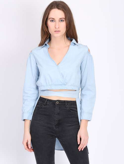 faux overlap neck high-low top  - 17032933 - Very Small Image - 1