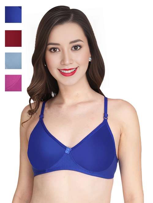 Liigne Women Everyday Padded Bra (Pack Of 4) - Made of Pure Cotton Full Coverage Non Wired Pushup Soft Cup for T-Shirt Saree Dress Sports Garment for Daily Use Everyday