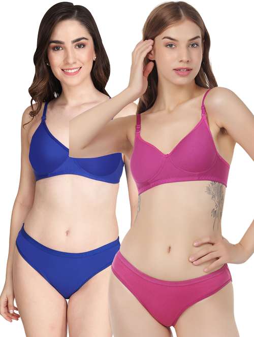 women pack of 2 solid bra and panty set