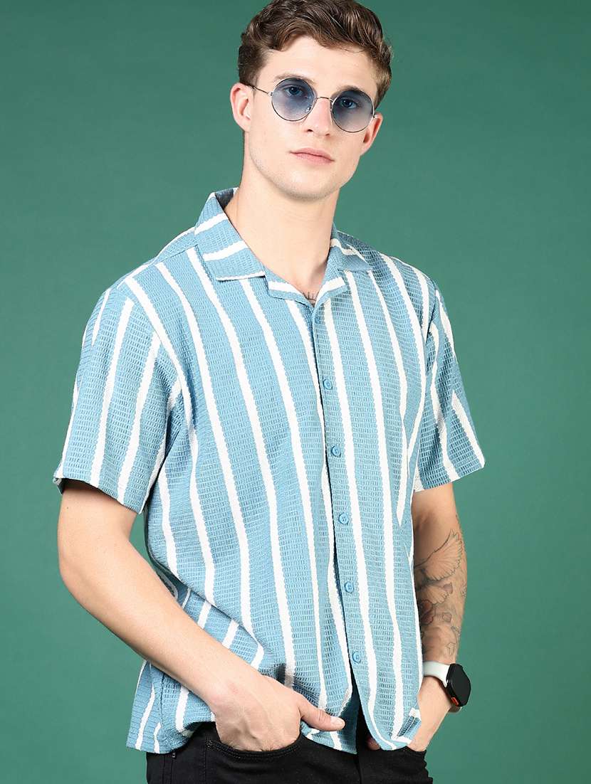 - » men blue stripes short sleeve regular fit casual shirt