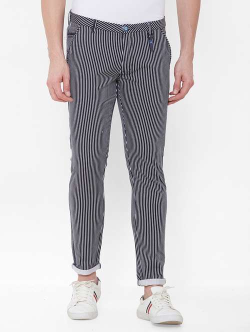 - » navy blue striped flat front casual trouser