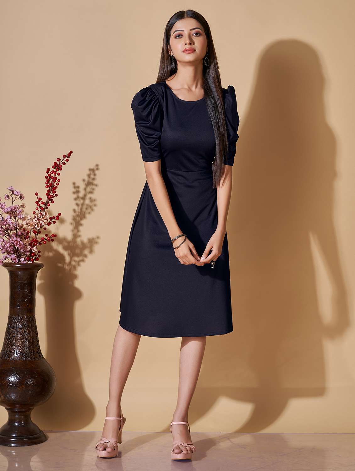 navy blue solid a-line dress