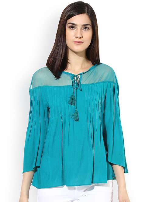 - » tie up neck pleated a line top