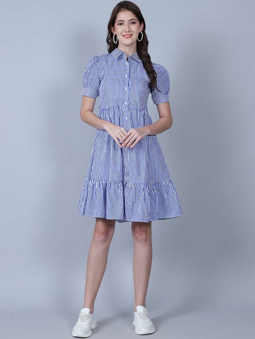 - » women striped collared tiered dress