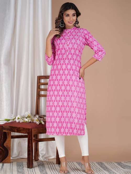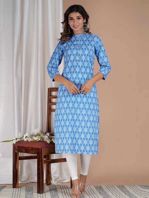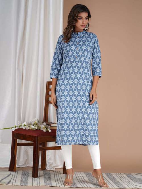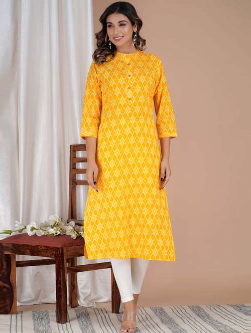 - Grab this beautiful kurta made up of cotton fabric featuring mandarin collar neck designs.