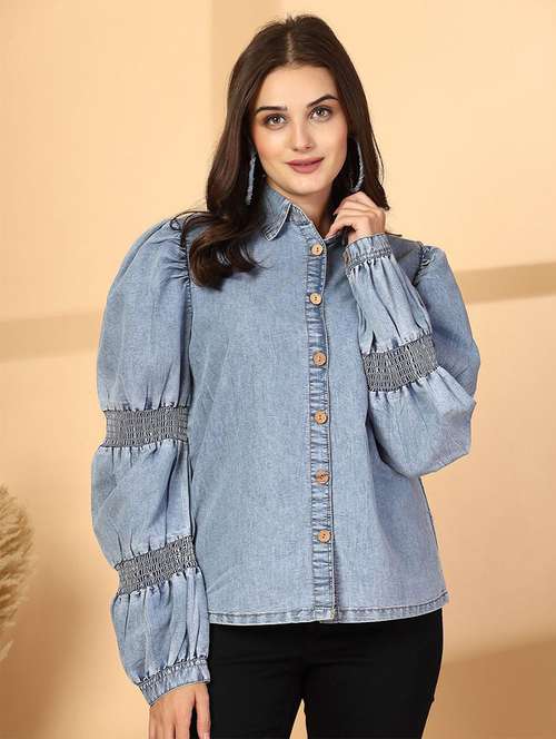 - » women solid collared puff sleeve shirt