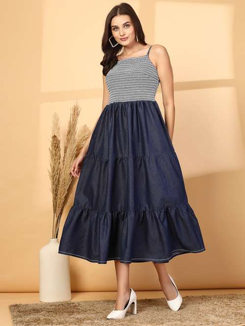 women solid shoulder strap tiered dress