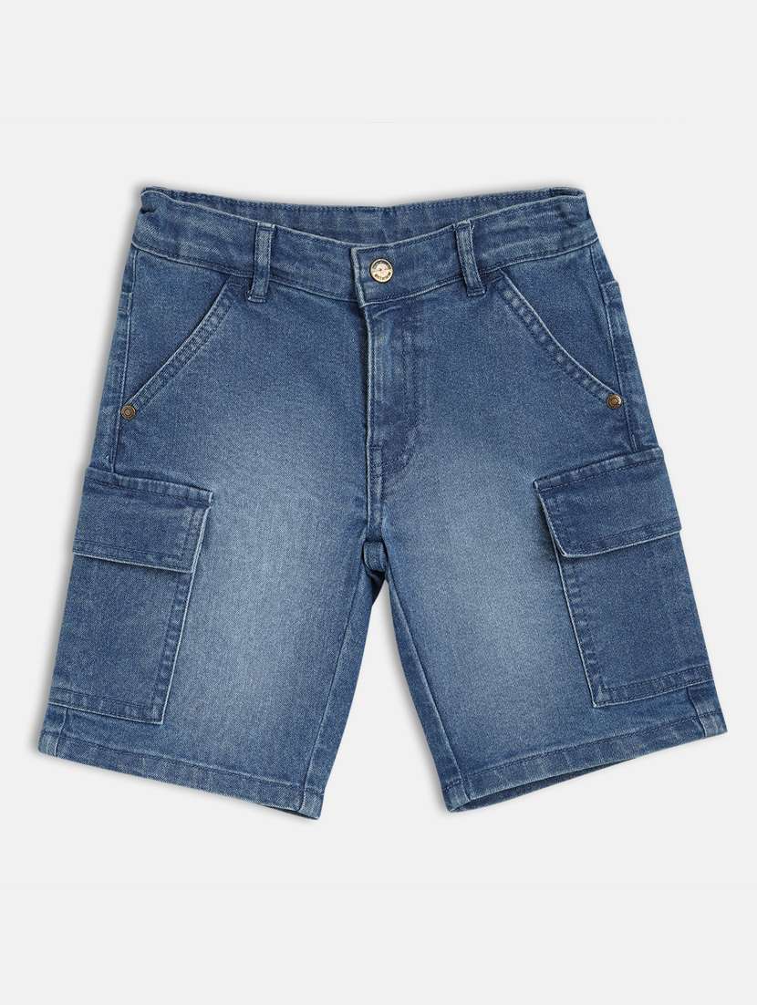 - » kids solid mid rise denim cargo shorts