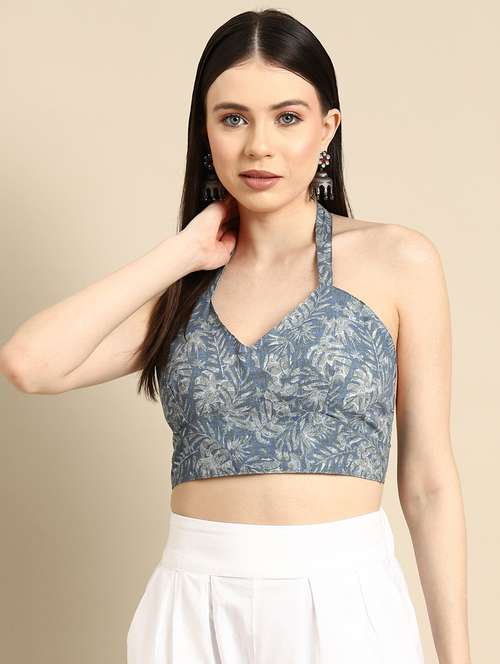 women blue paisely printed stitched blouse