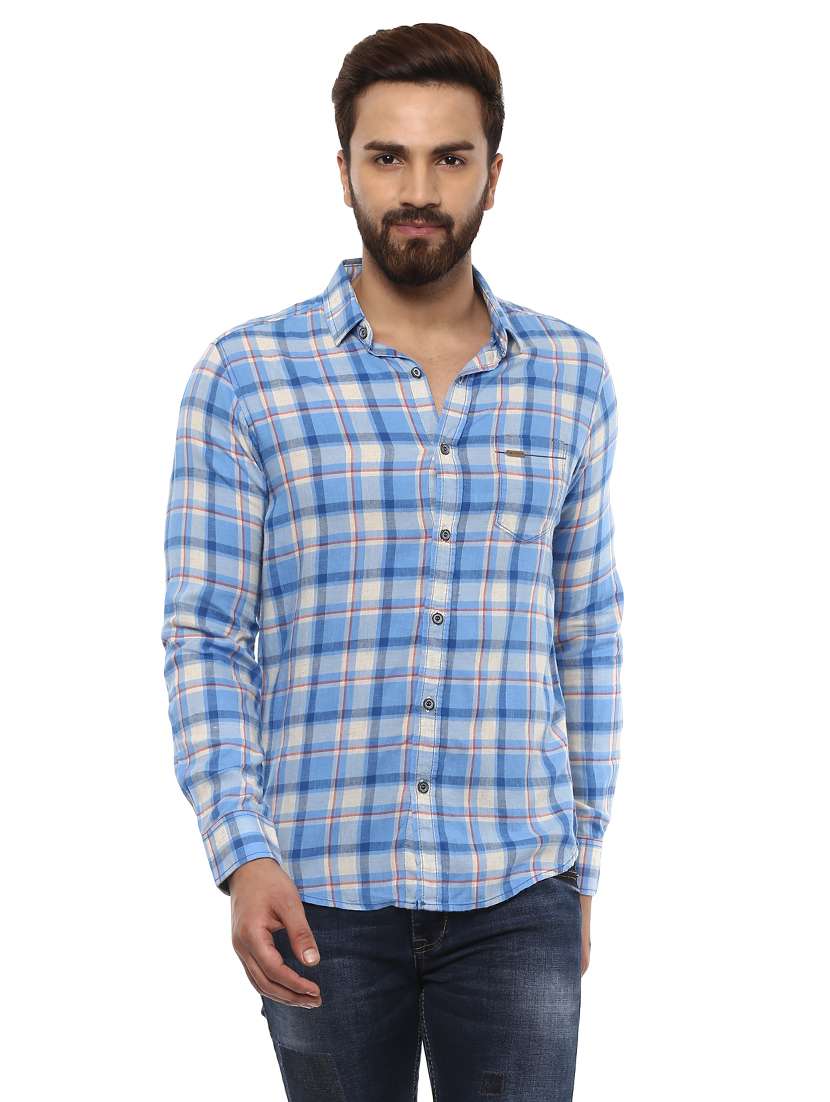 - Be a head turner by wearing this casual shirt from Mufti and grab it in blue colour.