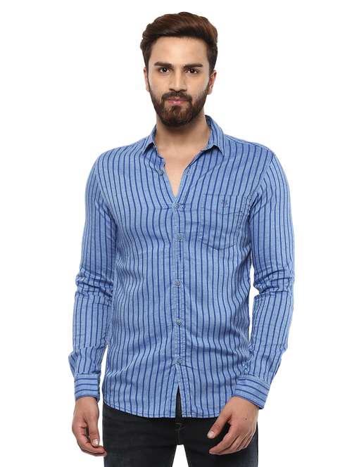 - Be a head turner by wearing this casual shirt from Mufti and grab it in blue colour.