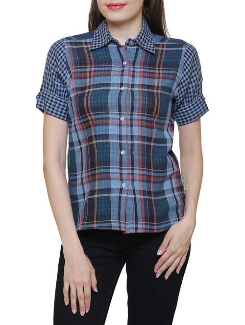 - » blue checkered cotton shirt