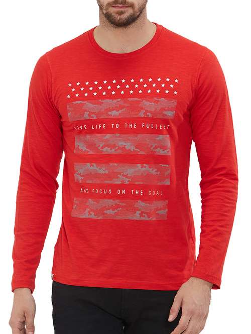 - » red cotton front print t-shirt