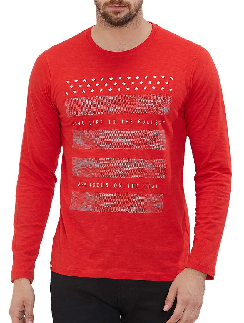 red cotton front print t-shirt