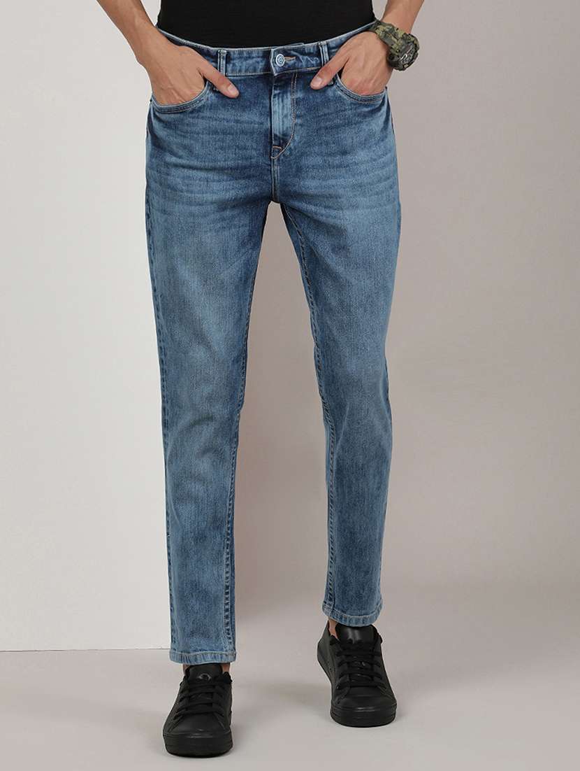 men washed mid rise denim jeans