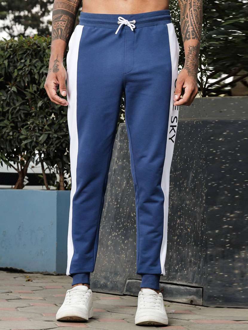 - » men blue color block mid rise jogger