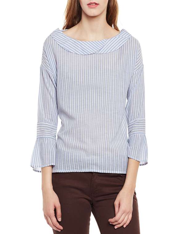 - » lace insert striped bell sleeved top