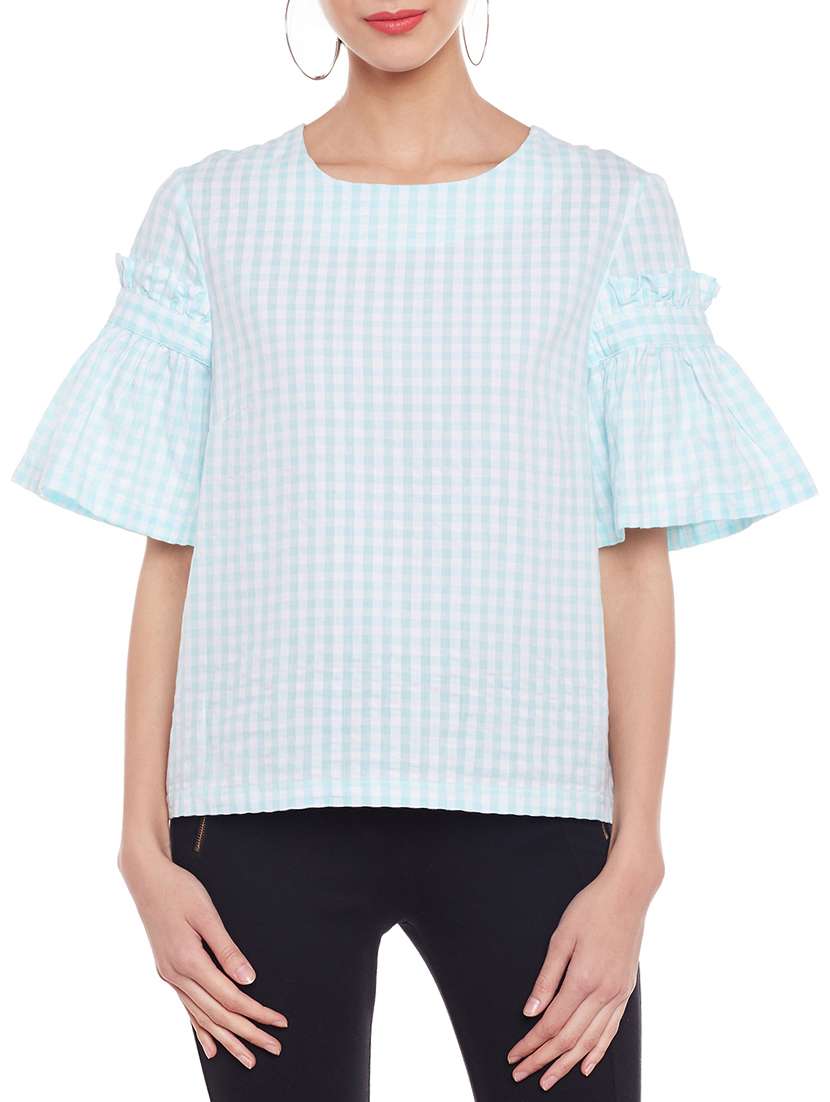 light blue checkered top