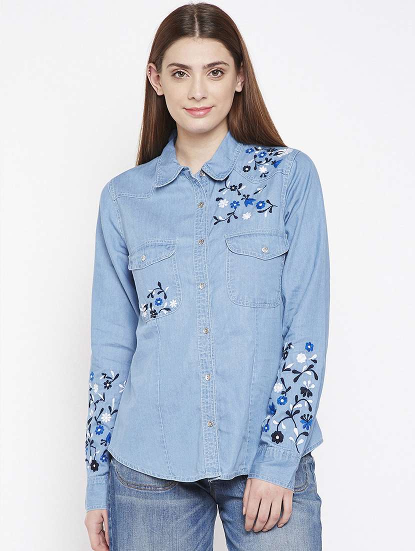 - » floral embroidered denim shirt