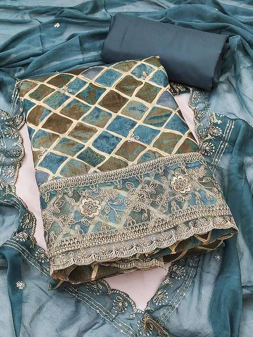 - Look ultra gorgeous in unstitched suits from Peachmode and grab these beautiful suits in blue colour.