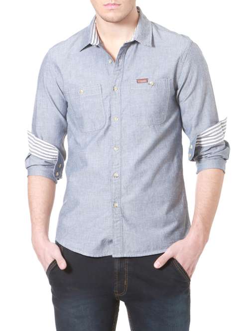 - » blue cotton casual shirt