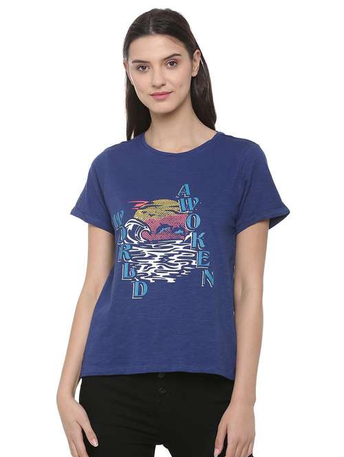 turn up sleeved graphic print tee - 16040457 - Very Small Image - 1