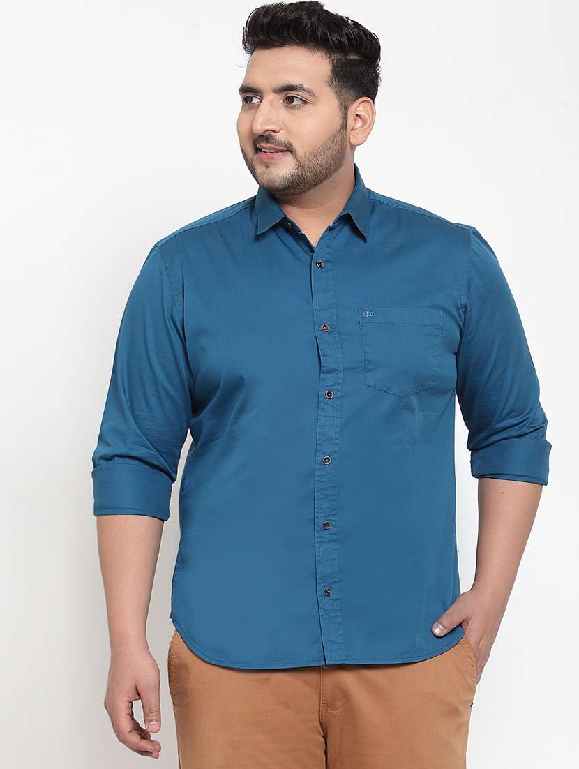 blue solid plus size casual shirt