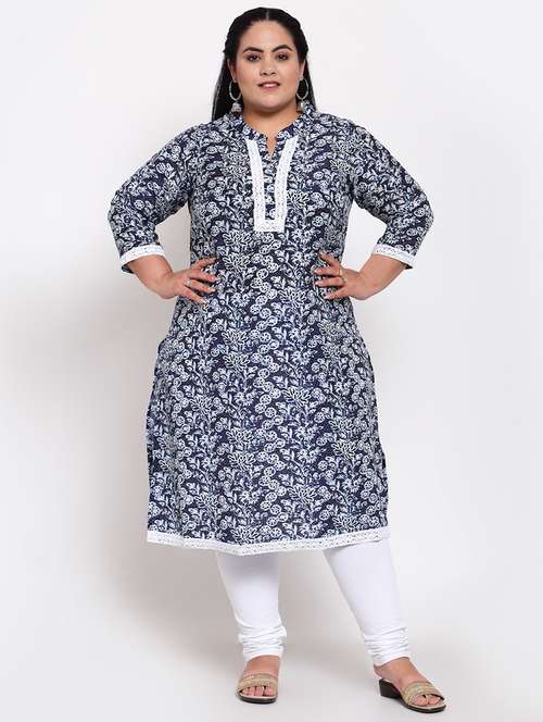 - » blue floral print a-line kurta