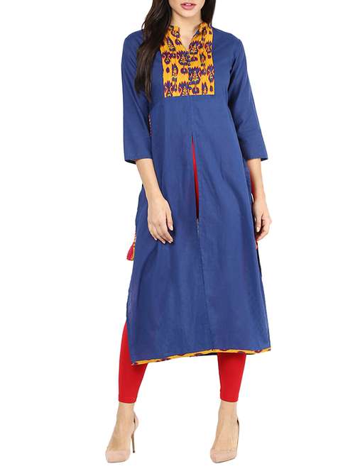 - » blue cotton high slit kurta