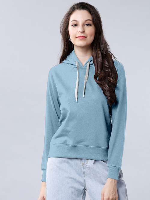 women solid long sleeve hooded sweatshirt