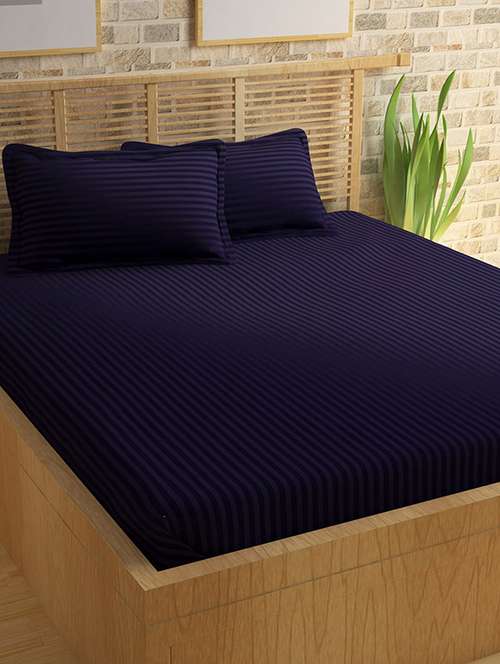 - » self striped double bed elastic fitted bedsheet with 2 pillow covers