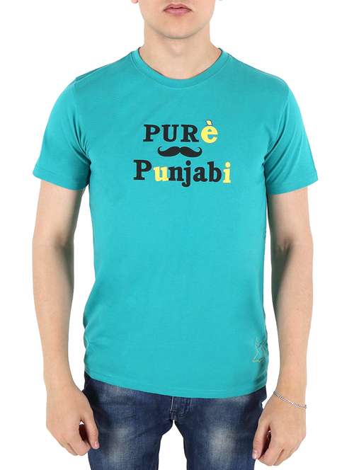- » blue quote printed cotton t-shirt