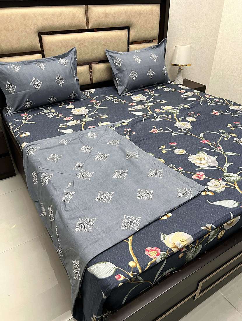 printed tc fitted king-sized bedsheet with 2 pillow covers