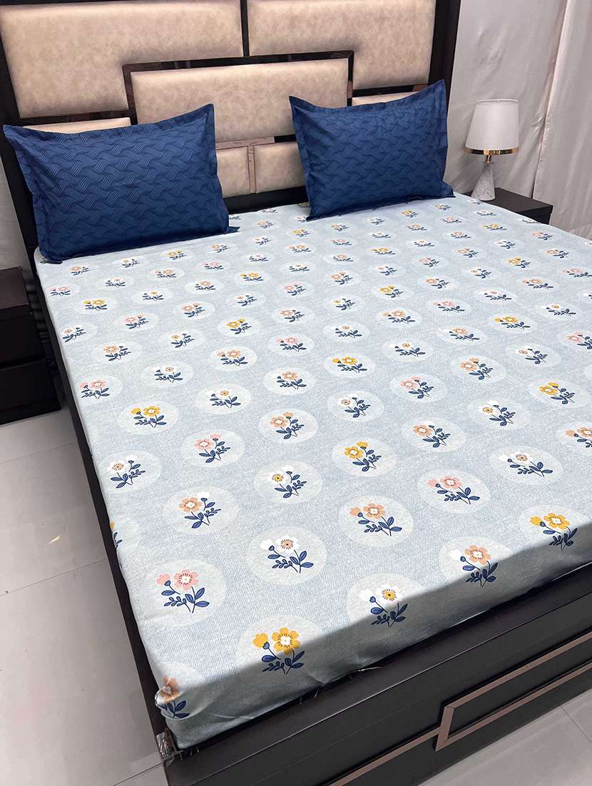 - » printed tc fitted king-sized bedsheet with elastic and 2 pillow covers