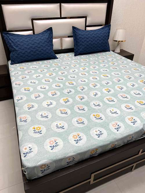 printed tc fitted king-sized bedsheet with 2 pillow covers