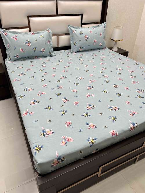 printed tc fitted king-sized bedsheet with 2 pillow covers