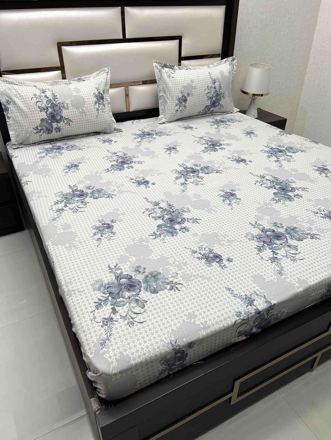 printed tc fitted king-sized bedsheet with 2 pillow covers