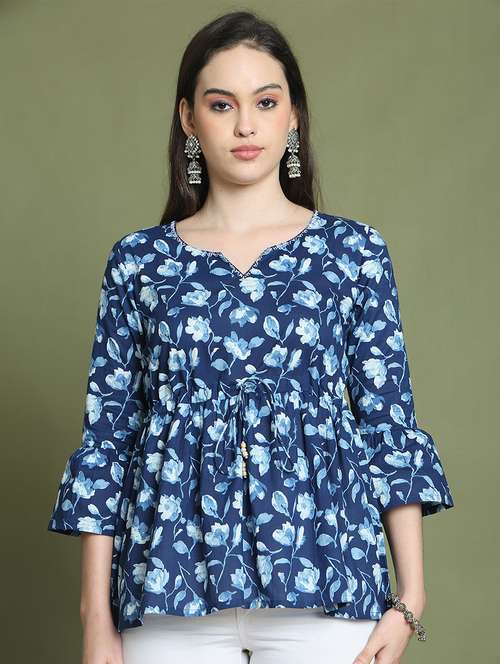 - » women floral printed notch neck flared top