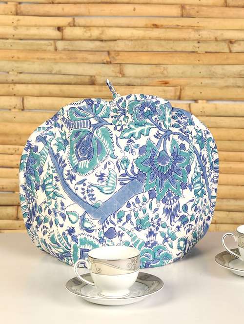 - » rajrang white floral hand block printed tea cosy