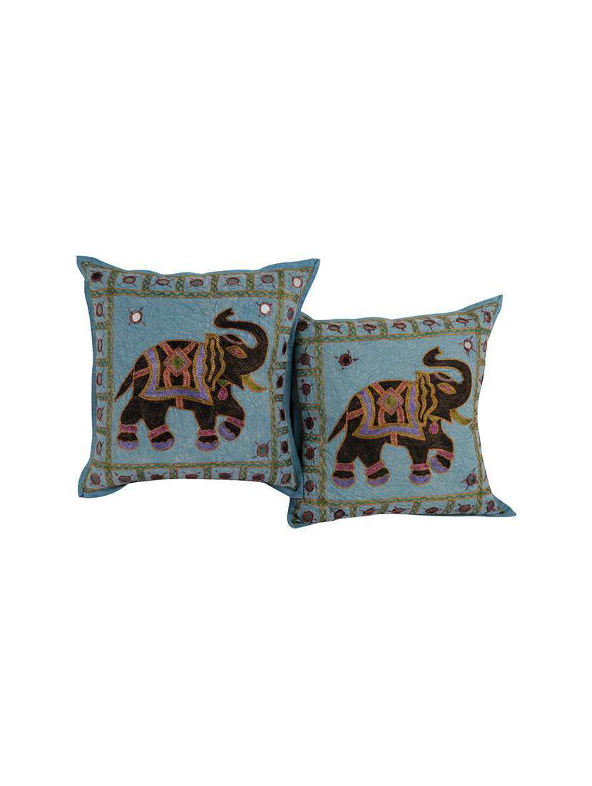 rajrang embroidered with mirror work cotton set of 2 cushion cover