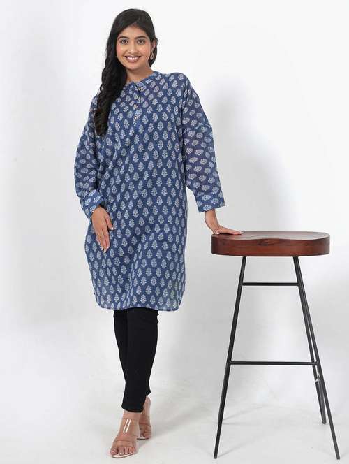 - Are tunics your first love? Well, lay your hands on a spectacular collection of tunics from RANGRIWAZ and flaunt them in blue colours.