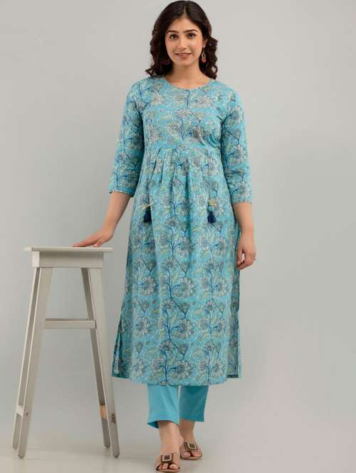 - Find gorgeous sets of ethnic wears in trending designs in light blue colors suitable for casual wear of occasions.