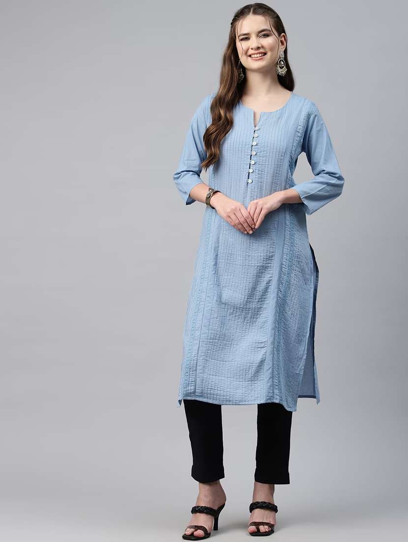 - » women blue notch neck straight kurta