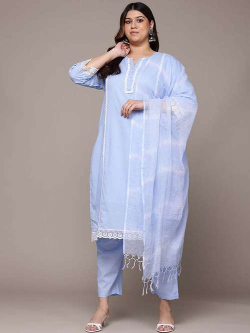 • Find gorgeous sets of ethnic wears in trending designs in light blue colors suitable for casual wear of occasions.