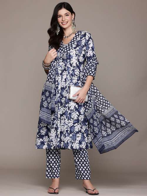 - Find gorgeous sets of ethnic wears in trending designs in blue colors suitable for casual wear of occasions.