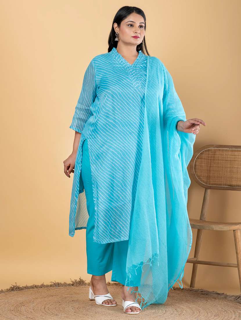 • Find gorgeous sets of ethnic wears in trending designs in blue colors suitable for festive wear of occasions.