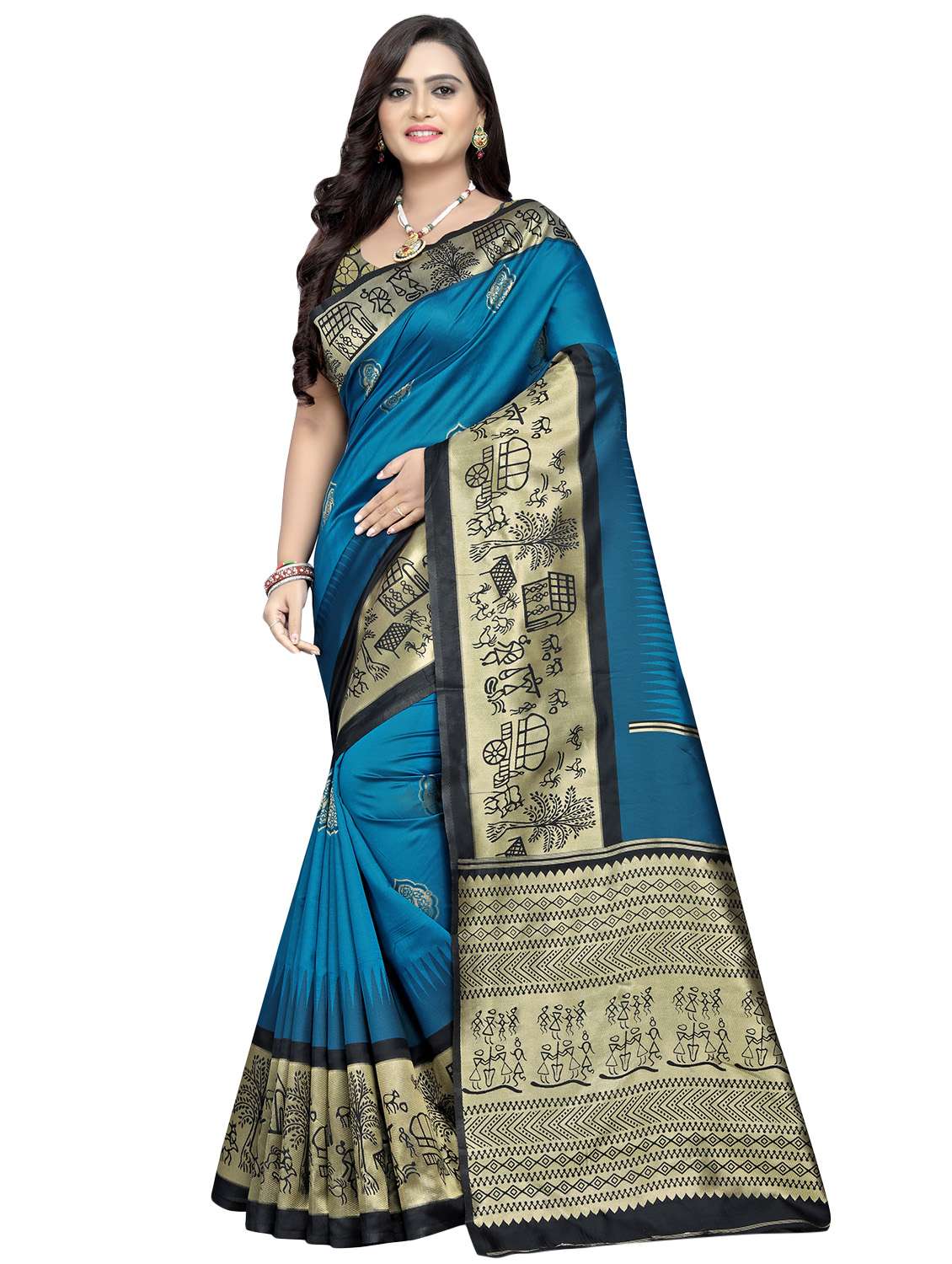 Saree fabric : Banarasi weaving Silk Work : Rich Zari Woven Pallu Type : heavy border Print Saree Saree length : 5.5 Mtr Blouse length : 0.8 Mtr Unstitched Blouse Pack of 1 Saree : 1Blouse